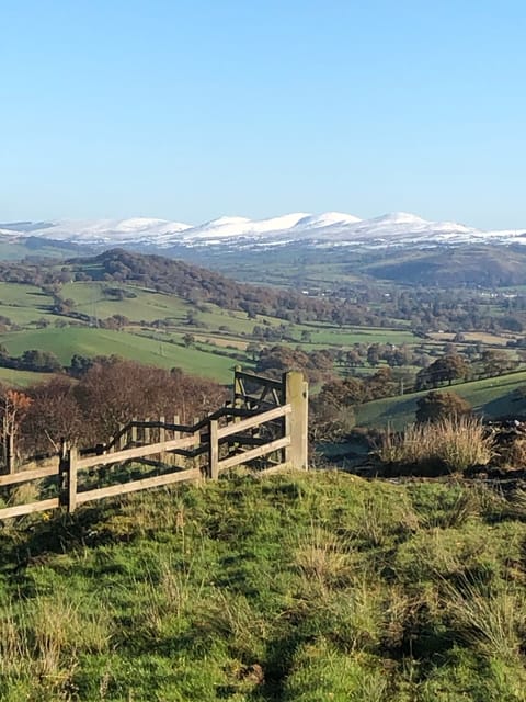 Comfortable, cosy with underfloor heating and nestling in upland-grazing land at about 1,000 feet elevation, this one-bedroom (one double-bed, sleeping two people) studio cottage has views down the valley and to the mountains beyond. The cottage has panoramic views towards Moel Famau to the north and the Berwyn range to the east and towards the Snowdonia range and Cadair Idris to the west and south. Located at the gateway to the Snowdonia National Park (on the edge of the Hiraethog region) but despite its rural location is closely accessible to the A5 trunk road and only 35 miles from Chester, 13 miles to LLangollen, 9 miles to Bala (with its lake and water sports ) and 18 miles from Betws –y- Coed. There is a local pub (the Goat Inn) within walking distance from the studio cottage and fabulous breakfasts and fine dining (lunchtimes and occasional evenings) at Rhug organic farm a couple of miles down the road .