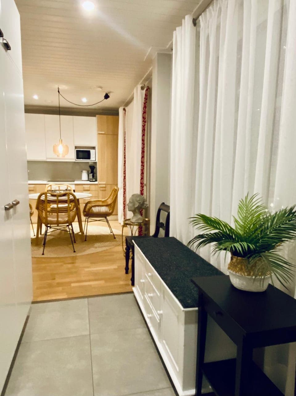 Erinomainen kohde ja hintalaatusuhde. Hyvällä maulla sisustettu hyvänkokoinen yksiö. Selkeät saapumisohjeet kuvineen viestillä ja ohjeet myös seinällä. Ei ollut tarvetta olla yhteydessä majoittajaan. Todella hyvän oloinen peti ja täysvarusteltu keittiö. Pientä purtavaa ja vissyä kioskimaisesti myytävänä. Kuitenkin parasta oli asunnon puhtaus!