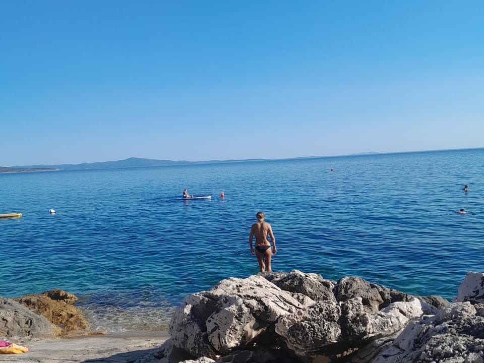 Lijep, moderan i čist apartman. Jako udoban madrac i jastuci. Puno mjesta za skladištenje i hladnjak u sobi te dva radna stola. Pogled sa terase je prelijep. Svaki dan možete birati stolce, sofe, ležaljke ili ljuljačke za uživanje u pogledu. Domaćica Dobrila je izuzetna žena koja je Predraga i super za popiti kavu ili domaće vino navečer. Nakon dugog puta mi je donijela večeru i domaće vino. Odlično radi kolače, a njen muž grillanu ribu. Plaža, dućan, bankomat, restoran i kafic su udaljeni samo 3 minute pješice. Sve pohvale!!!! Vraćam se opet!❤️❤️❤️