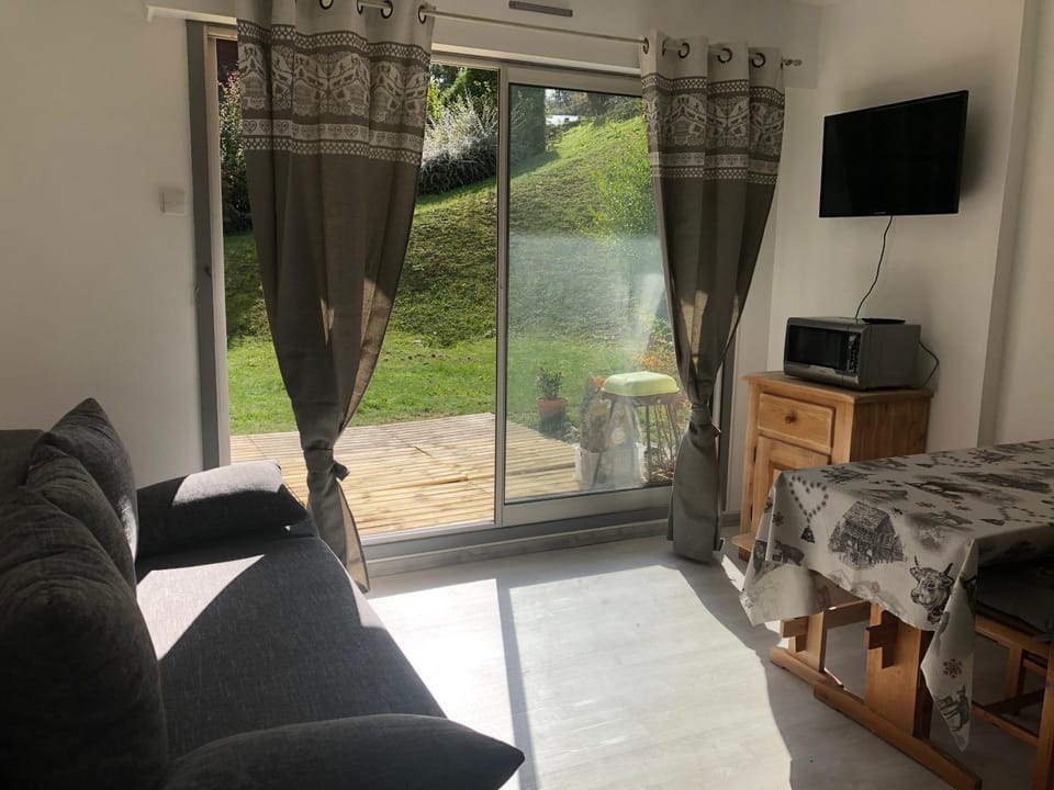 "A very nice welcome. Apartment clean and well equipped. Terrace with garden furniture. The children were delighted. View of Mont Blanc from the parking. Peace and quiet. In the evening, the wonderful ..."