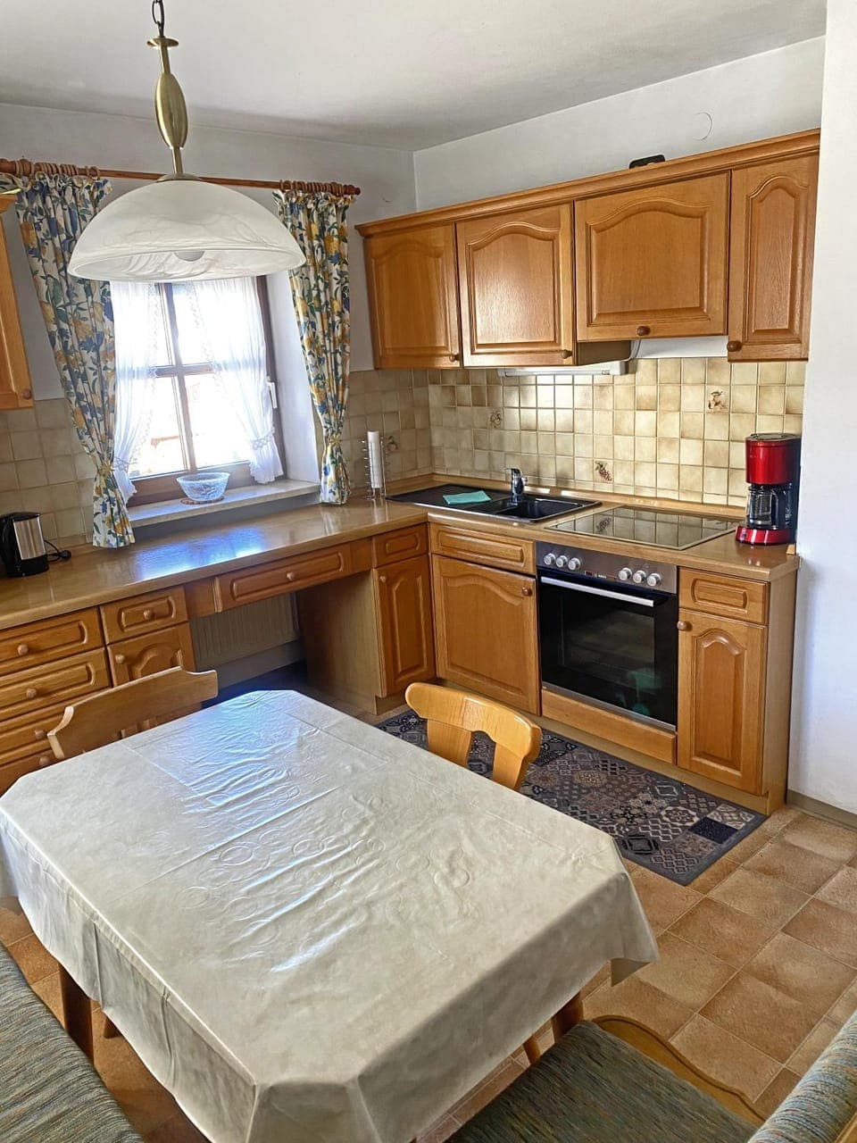 Aber auch für Familien mit Kindern erscheint es mir als die absolut perfekte Unterkunft: Geräumig, in rustikalem Stil perfekt eingerichtet. Optimale, günstige Lage in einer wunderbaren Urlaubsregion. Ein aktiver Bauernhof in dem man wohl sogar bei der Stallarbeit zusehen kann. Kinderspielplatz, großzügige Parkmöglichkeiten, WLAN, Fernseher, eine sehr diskrete, unkomplizierte und vor allem freundliche Gastfamilie. Eine voll ausgestattete Küche mit eigener Essecke, in der es an wirklich NICHTS fehlt: z. B. Backofen, Herd, Kühlschrank, Kaffeemaschine, Wasserkocher, Eierkocher, Geschirr, Besteck und sogar mit einer guten Grundausstattung von Verbrauchsmaterialien: u.A. Salz, Pfeffer, Gewürze, Essig, Reis, Suppenbrühe, Kaffee, Zucker und vieles mehr, damit man auch wenn man müde ankommt nicht alle Kleinigkeiten extra erst irgendwo kaufen muss.