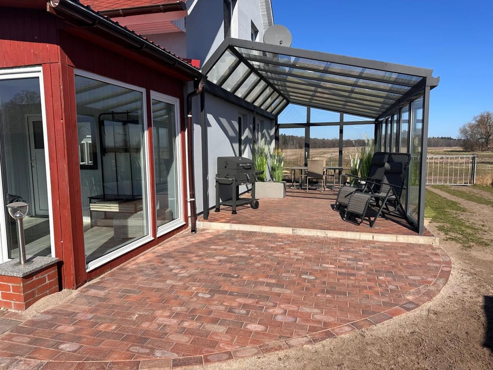 Sehr ruhige Lage am Dorfrand, Parkplatz vor dem Haus, komplett eingezäunt, schöne Sitzgelegenheiten draußen. Das Haus ist zweckmäßig und gemütlich eingerichtet, der Pelletofen verbreitet eine schöne Wärme ( wir hatten noch kühle Nächte)!