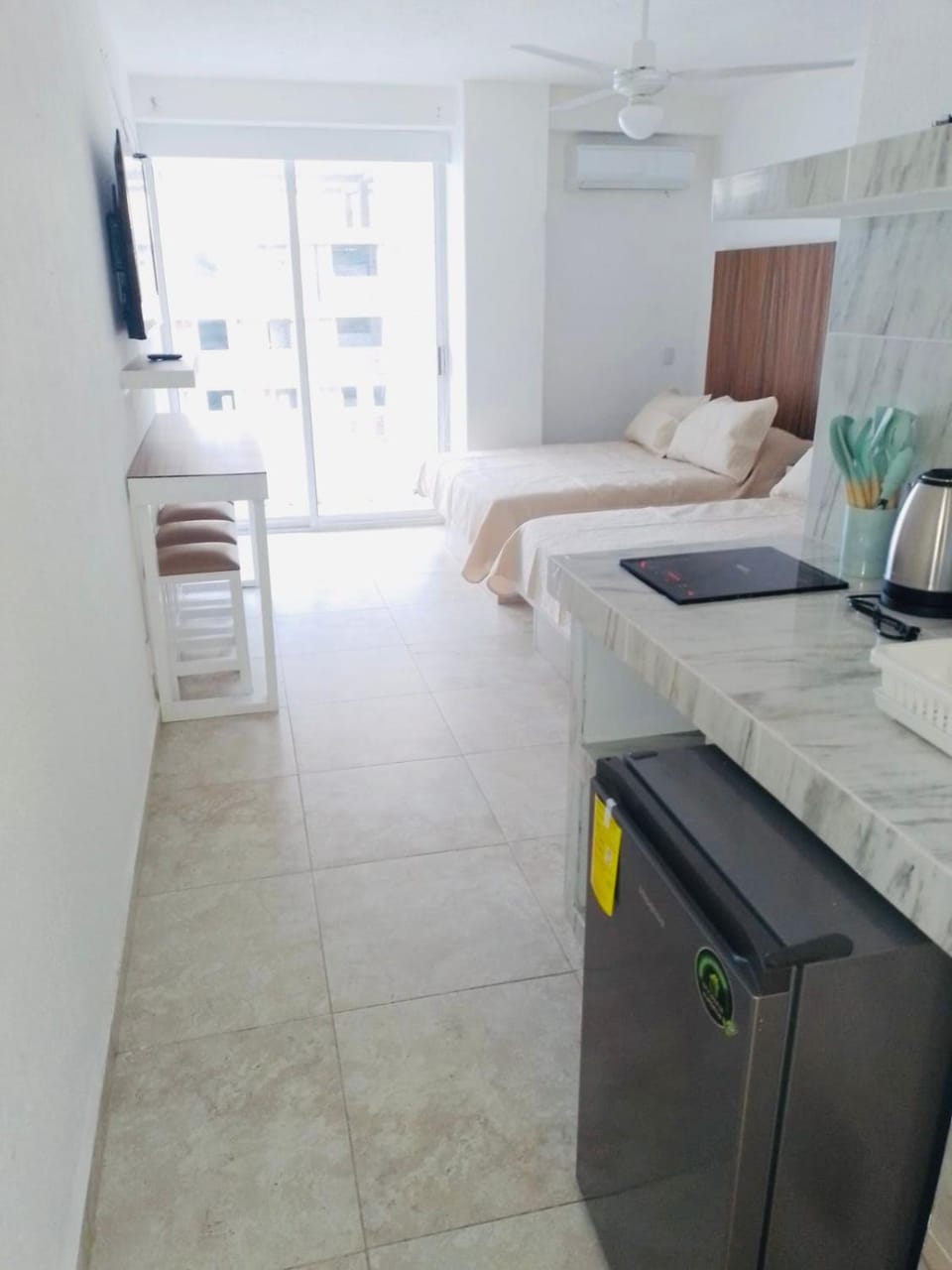 La zona no tiene bares o discotecas buenas. Si vienes en autobús tendrás que pagar taxi (no hay didi ni Uber), y si llegas por la noche la calle está muy muy oscura y da un poco de miedo. El ascensor tarda un siglo en llegar.
