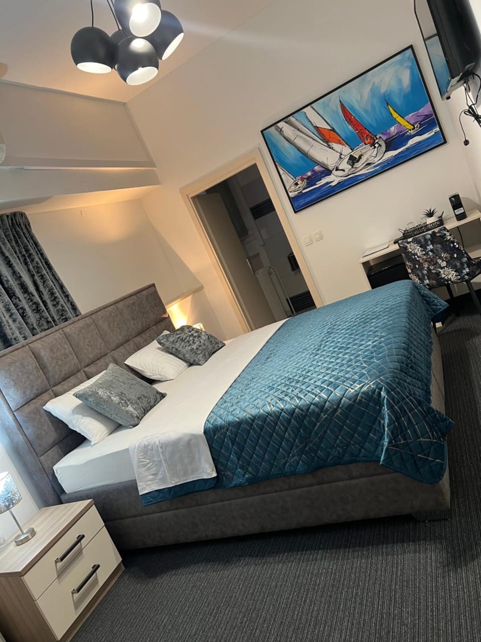 Camas muy comodas, agradable decoración . Nos dejaron cafe y vajilla descartable en el baño absolutamente todo lo necesario Muy completo y muy facil el checking y la obtencion de las llaves