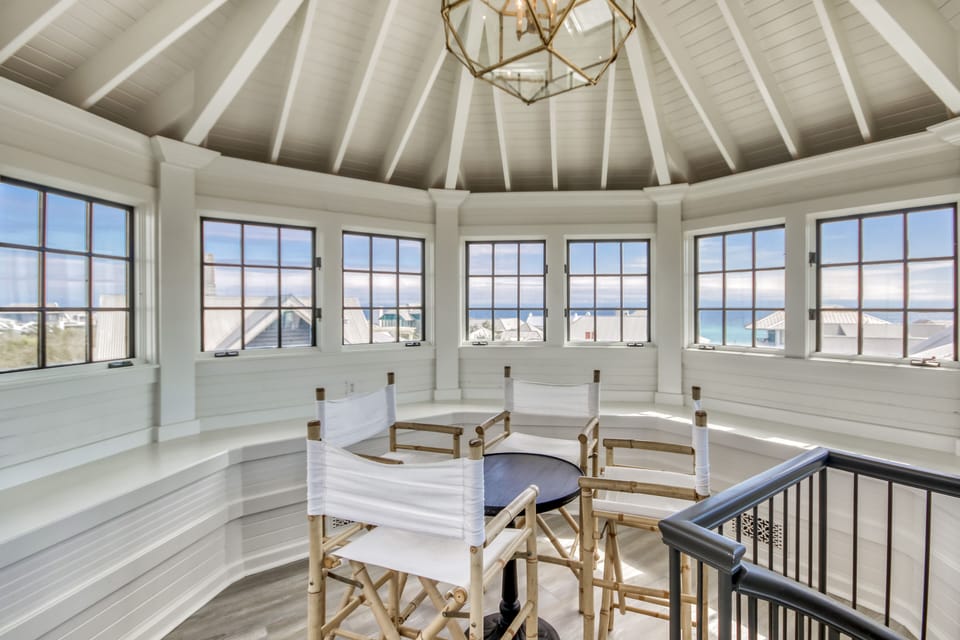 The third floor features an expansive master suite, complete with a sitting room, coffee bar and a private bath. Once in the sitting room of the master suite you will find a spiral stair case that leads to the perfect spot for relaxing after a long day. It is a circular room with plenty of seating and windows that overlook the Gulf and Rosemary Beach.Living the Dream Carriage House is a 2 bedroom, 1 bathroom located in the heart of Rosemary Beach. This delightful, sunlit carriage house is only a few steps from the Town Center, Barbados or Coquina pools, and the beach!