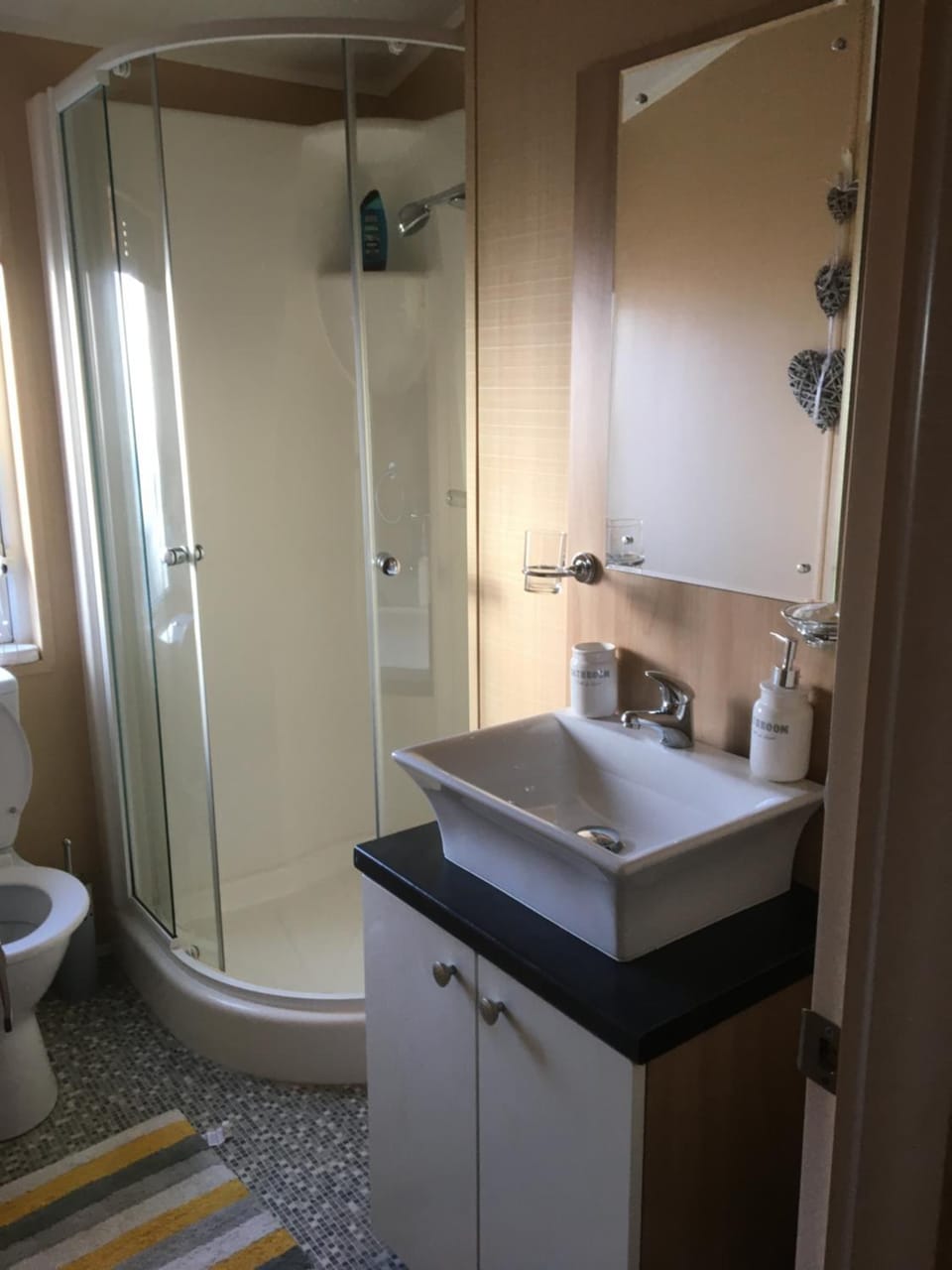 The veranda to the front door of the lodge was very dangerous and slippery due to the rain. Handles in the shower would be a good thing. It would help disabled issues.