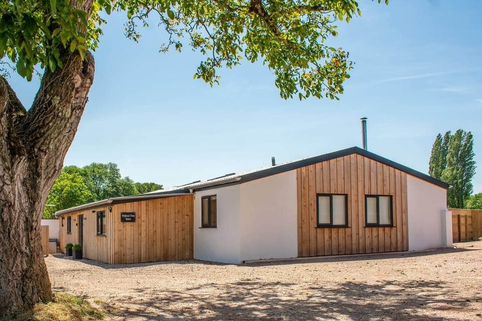 Walnut Tree Barn is a stunning and spacious converted barn with a hot tub, set in the heart of Devon. Thoughtfully designed for light, airy and comfortable living, it features four ensuite bedrooms that can be arranged as twins or doubles. The large kitchen and cosy lounge offer plenty of space to relax and unwind, while the enclosed garden overlooks a beautiful meadow. Perfect for families or groups of friends seeking a peaceful countryside getaway. Walnut Tree Barn is a beautifully converted barn that comfortably sleeps up to 8 guests (or 9 with an additional folding bed). The property features four ensuite bedrooms, each with zip-link beds that can be arranged as twins or doubles, plus Smart TVs in every room for your comfort and convenience. The spacious lounge includes a wood burner, Smart TV, and plenty of comfortable seating for all guests — perfect for cosy evenings in. The large kitchen/diner is ideal for socialising, featuring a generous dining table with benches, a well-equipped kitchen, and a snug area where you can relax and listen to music. Outside, you’ll find a secluded garden with a hot tub, patio area, comfortable outdoor furniture, and a charming pergola with a cast iron table and chairs beneath — a lovely spot to enjoy the peace and quiet. For larger groups, a Jay-Be Supreme folding single bed can be set up in the cloakroom to accommodate a ninth guest. Entry is via a secure lockbox, with the key code provided prior to your arrival. The property has a separate front door, offering guests complete privacy and convenience. We live just opposite Walnut Tree Barn and like to pop over once you’ve arrived, just to make sure everything’s okay. After that, we’ll give you your privacy but are always nearby if you need anything. It is a rural countryside location with a private garden, overlooking a meadow. There are some houses nearby, a couple of agricultural storage barns and a small campsite adjacent to the property. Within a 5 minute drive (20 minute walk) is the charming market town of Crediton. Numerous country footpaths are on the doorstep. The surrounding Yeo valley countryside is ideal for walking and cycling. Fishing and golfing are also available locally. There are plenty of local country pubs and restaurants in the surrounding villages. The town of Crediton has a wonderful bi-monthly farmers market, a host of independent coffee and tea shops and a great selection of book, antique and gift shops. Crediton also has Chinese, Indian and Thai restaurants / takeaways, a leisure centre with public swimming pool, a large Tesco and a Morrisons. The historic cathedral city of Exeter is 7 miles away with easy parking and a direct rail link from Crediton. It has a bustling city centre with well-known high street shops and local independent retailers. Exeter has a selection of city centre bars and restaurants and there are also suitable places to eat and drink on the ancient waterside quay area of the city. The scenic national parks of Exmoor and Dartmoor are within a 40-minute drive away. Dartmoor is a vast moorland defined by forests, rivers, wetlands and tors (rock formations). Trails wind through valleys with Neolithic tombs, Bronze Age stone circles and abandoned medieval farmhouses. The area is dotted with villages, including Princetown, home to Dartmoor Prison used during the Napoleonic Wars. Exmoor National Park contains an amazing variety of landscapes that provide inspiration and enjoyment to visitors. Large areas of open moorland provide a sense of remoteness, wildness and tranquillity with spectacular coastal views, deep wooded valleys, high sea cliffs and fast flowing streams. The South Devon ‘Jurassic’ coast is a 40-minute drive away while the rugged North Devon coast and surfing beaches are a 60-minute drive away. Both the coastlines of Devon are popular visitor attractions with coastal footpath walks, beach bathing and water sports alongside the regions charming fishing villages. You will most likely need a car to get to the property, althougn there is a train station in Crediton, and taxi companies that can transport you to and from the town. Parking is available for up to five vehicles. Opposite the property is a small, family-run campsite during the summer months only (please note this does not belong to the property). Guests are welcome to enjoy the Oak Tree Meadow, a peaceful space ideal for walks. A branch railway line runs through the valley nearby. Occasionally, you may hear the gentle sound of a train passing, a subtle reminder of the serene countryside setting.