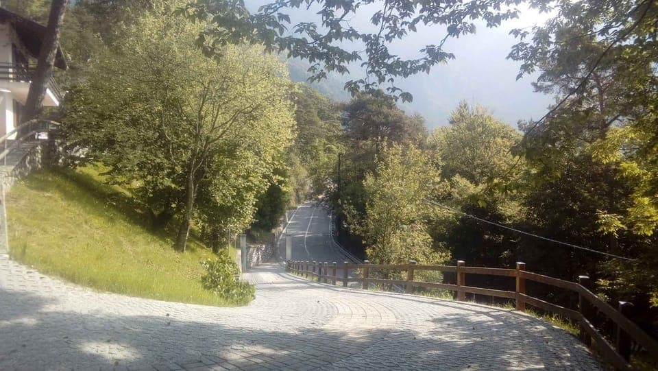 Val Maria-pur, 800 m above sea level. The holiday apartment is located on an 800 sqm garden plot with flowers and trees. The landlord does not live in the house or on the property. The garden of Casa Ambra is partially fenced. Inside the garden we also find private parking spaces. Access is via a side road (asphalted). Parking (for 1 car) on the property. Access to the house is via an ascent on the right-hand side of a secondary road.