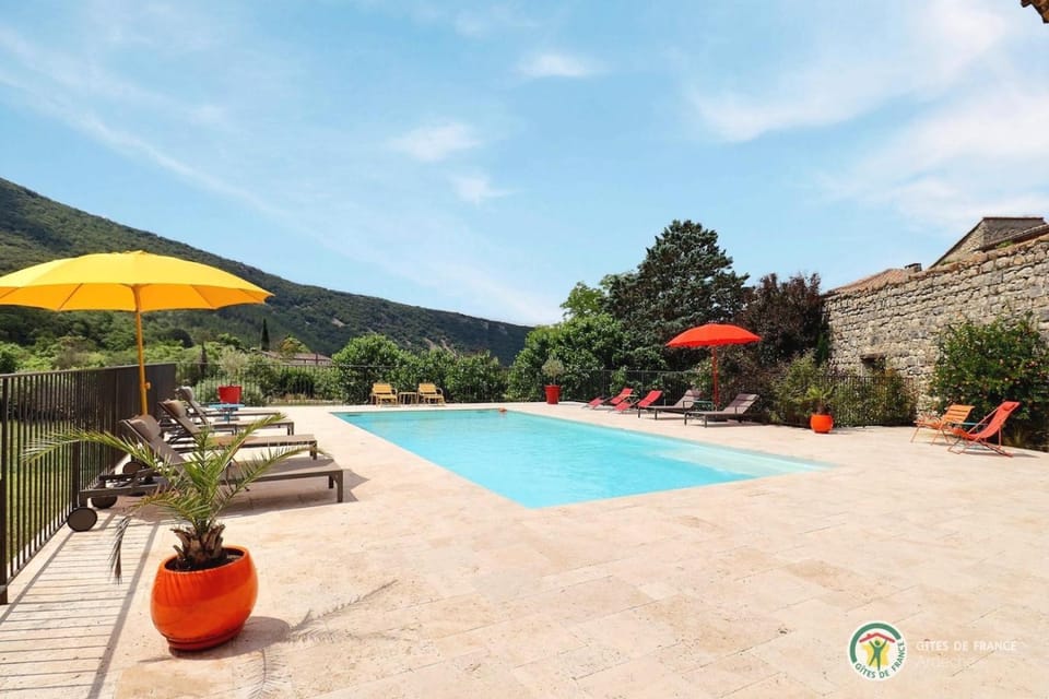 11 miles from Pont d'Arc in Saint-Maurice-dʼIbie, Gite les Oliviers - Le Domaine du Viticulteur - St Maurice d Ibie provides accommodations with access to a solarium and open-air bath.