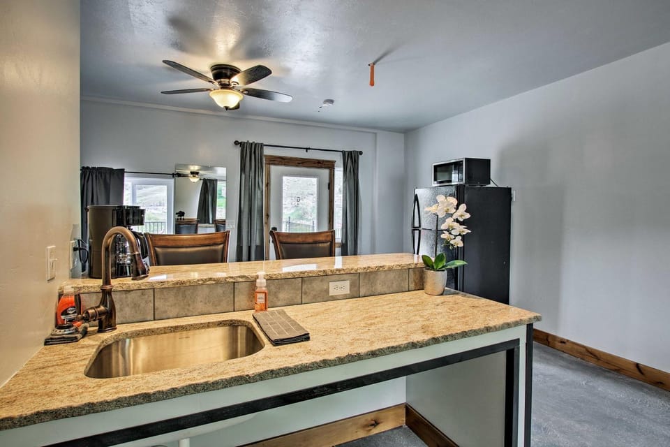 Indulge in a peaceful retreat at Lava Hot Springs Studio w/ Deck: Walk to Hot Pools, our elegant Apartment in Lava Hot Springs. Enjoy amenities including Air conditioning, Kitchen and Microwave, and more.