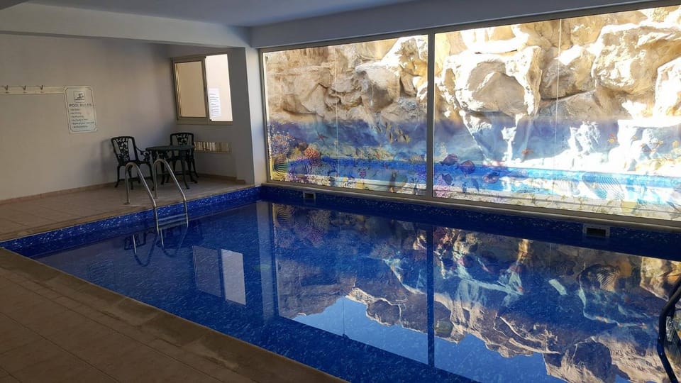 Swimming pool, actually one outside, one inside.
