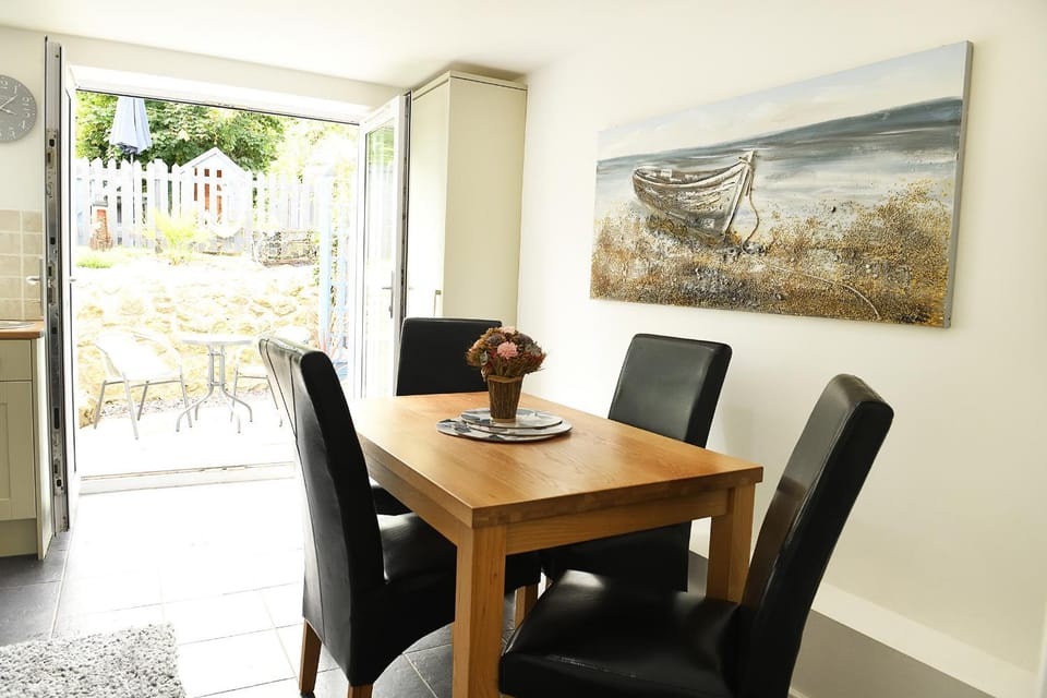 The host Julie could not do enough for us from start to finish. The cottage is so comfy and welcoming. Beds comfy. Everything you need is in the cottage. The view from upstairs is amazing if the weather is awful outside, you can watch the waves and people go by.