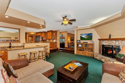 ✓ Family Rooms: Two large areas, each with oversized sectional sofas, gas ceramic log fireplaces, and flat-screen TVs.