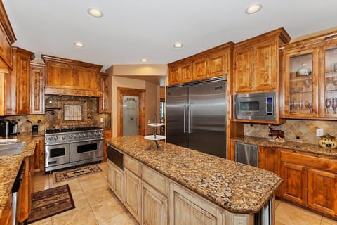 ✓ Custom Kitchen: High-end Viking appliances, granite countertops, a walk-in pantry, and both a standard coffee maker and Keurig coffee machine.