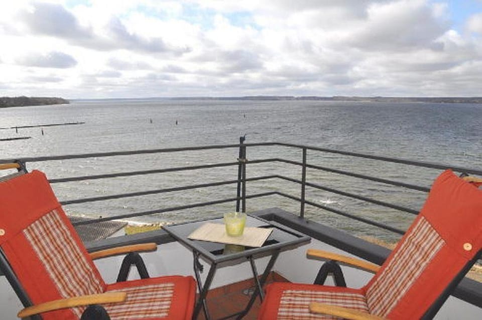 Indulge in a peaceful retreat at Large penthouse by the sea - box seat on the fjord -, our elegant Apartment in Glücksburg. Enjoy amenities including Balcony/Terrace, WiFi/Internet and Kitchen, and more.