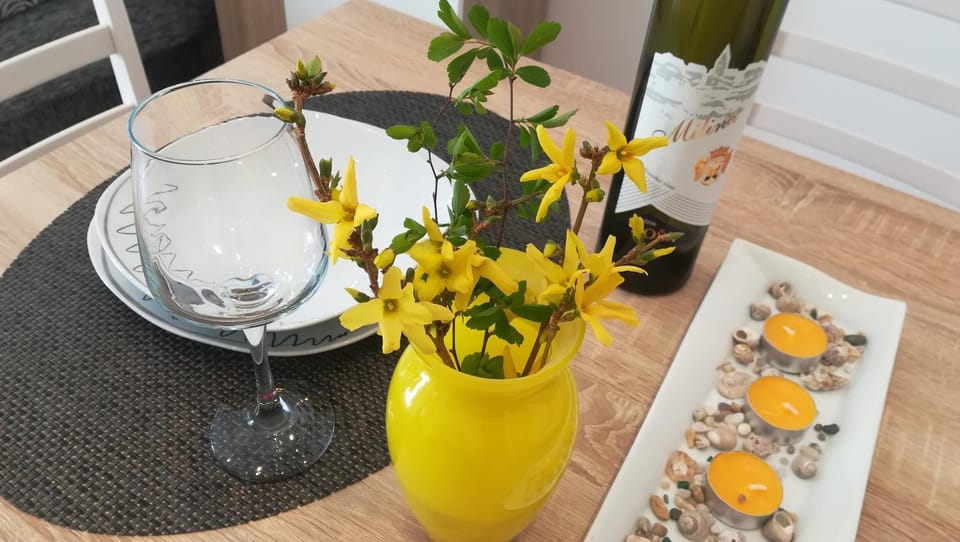 Ubytovanie veľmi blízko autobusovej stanice, cca 5min peši, tichá lokalita, apartmán 1. čistý, priestranný, pripravený, zariadený.