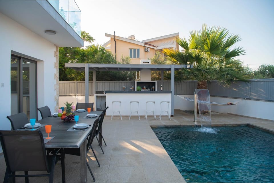 Yes, a swimming pool is available for use at Villa Ruby Yiasemina. Enjoy the water!