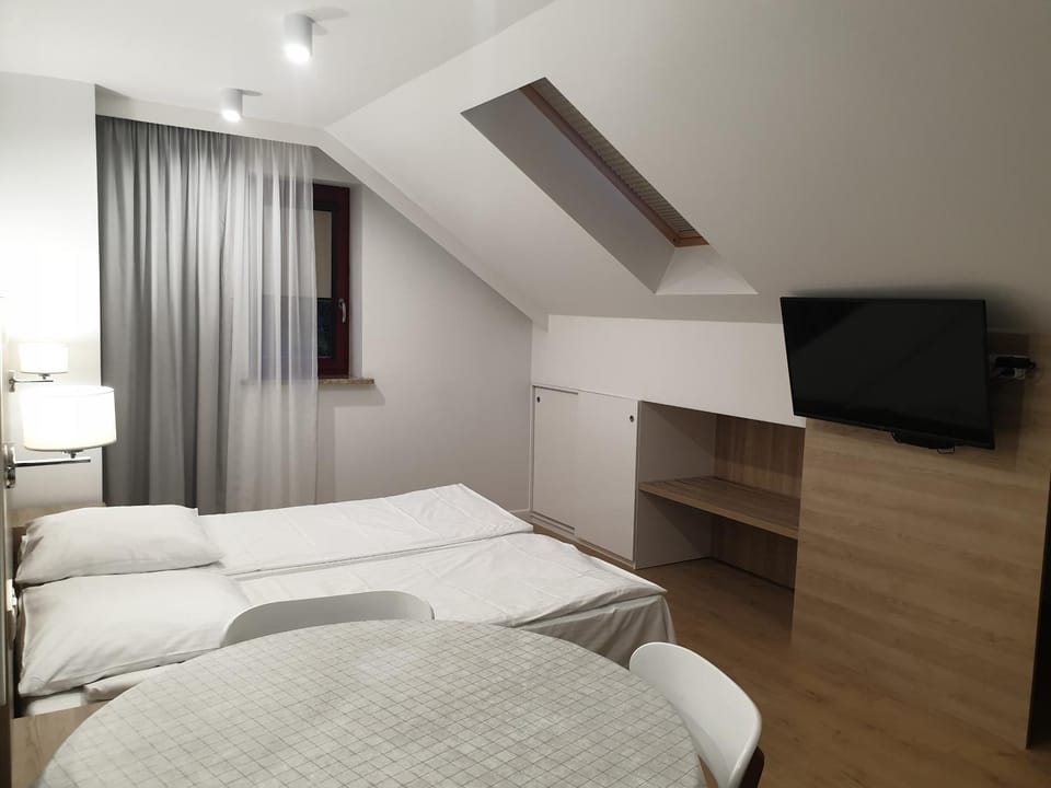 Niestety ściany między pokojami są dość cienkie, więc jak sąsiedzi szli do łazienki to było wszystko słychać, ponieważ nasze łóżko graniczyło ścianą z ich łazienką. Czajnik jest bardzo zakamieniony, zrezygnowałyśmy z kawy czy herbaty w pokoju, kilka szklanek było również niedomytych. W pierwszy dzień nie było ciepłej wody, co wytłumaczone było rozregulowanym piecem po opadach deszczu (brakiem prądu z tego względu), ale dopiero po naszym telefonie Pani Właścicielka zareagowała na prośbę o dopilnowanie ciepłej wody chociaż na wieczór, żebyśmy mogły wykąpać się po podróży. W łazience przydałby się ręcznik/dywanik na wyjście spod prysznica oraz 2 mniejsze ręczniki poza dużymi kąpielowymi (można było się poczęstować dodatkowymi ręcznikami z części wspólnej, jednak jakoś człowiek ma pewność, że ręczniki dostarczone do pokoju są prosto z prania i nikt z gości nie dotykał ich wcześniej).