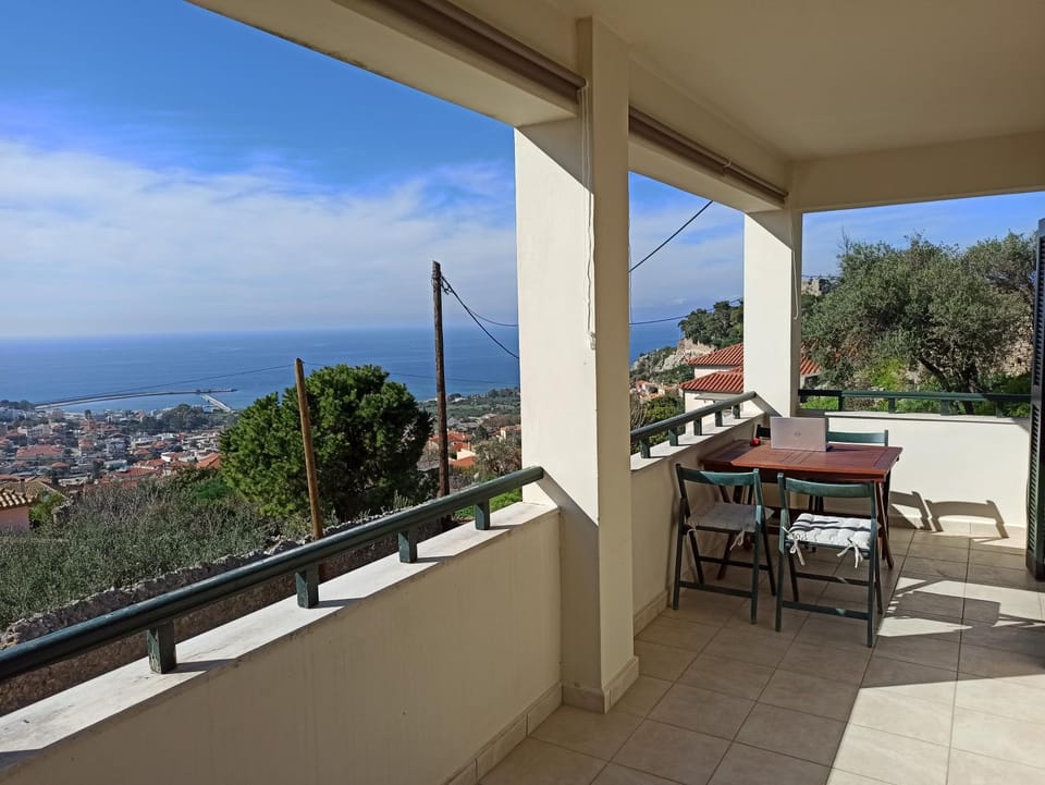 Petros is an exceptional host! He sent us all the information we needed beforehand and when we texted him he always answered instantly. We were in Kyparissia in April, therefore the weather was still a bit cold. When we asked Petros if there was some wood for the fireplace in the house, he even sent somebody to bring us wood. Such kindness is rare. We were very happy with our exceptional experience in this house. It is huge and offers a lot of space with two terraces and a perfect view of the city and the sea. Also the house is located in Kyparissias "old town", the loveliest part of the city. We can definitely recommend this accomodation.