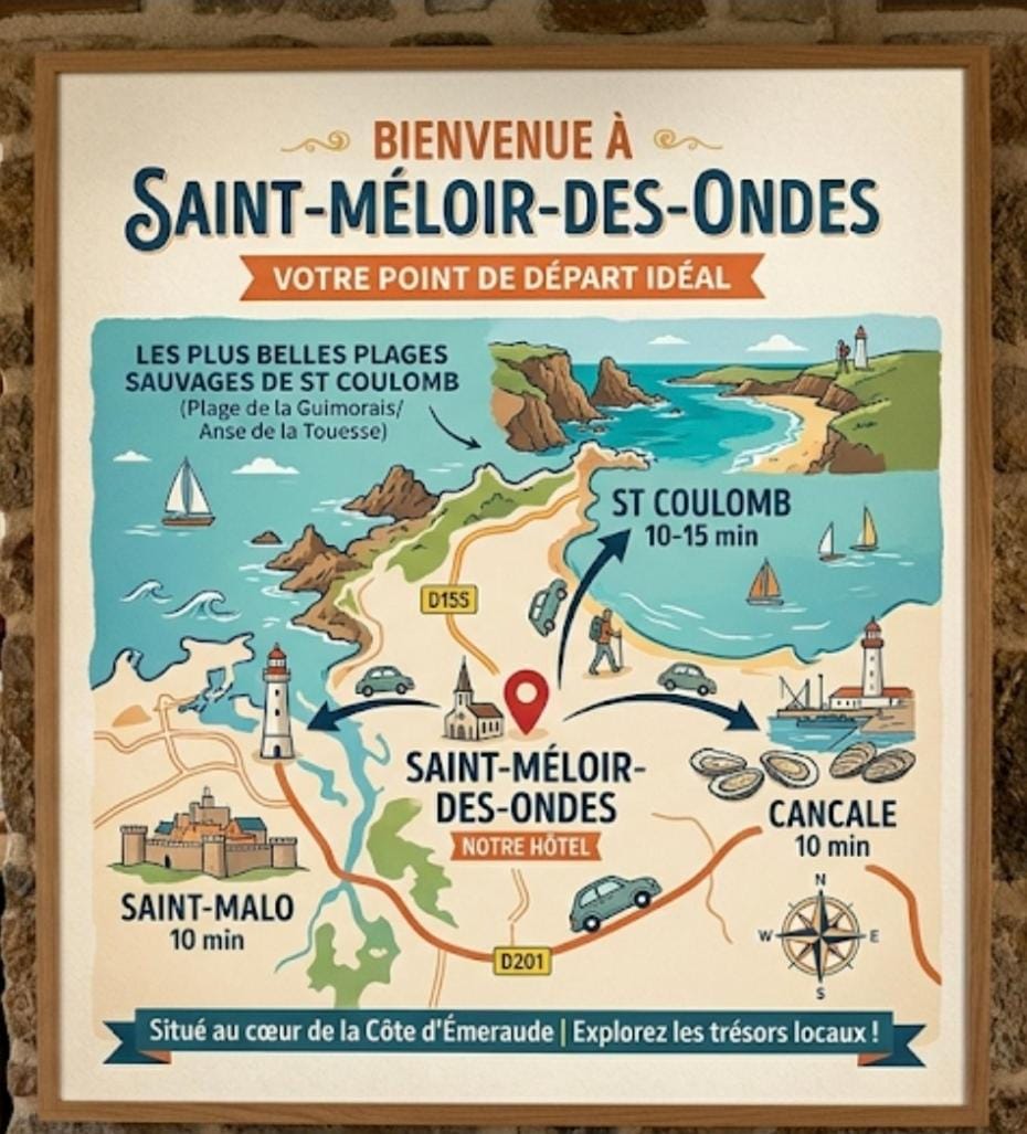 Le logement est très bien situé entre St-Malo et Cancale.