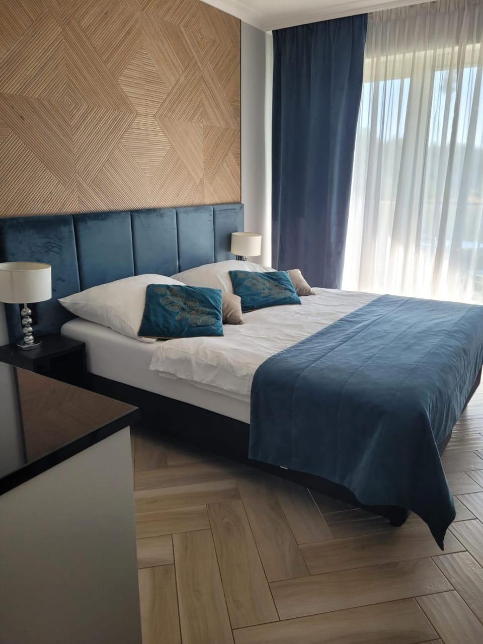 Apartament w świetnej lokalizacji – bardzo blisko morza i zejścia na plażę, a jednocześnie w zielonej okolicy. Dużym plusem jest obecność dobrze wyposażonej kuchni oraz tarasu ze stolikiem, przy którym można zjeść posiłek. Łazienka jest bardzo ładna i nowoczesna. Sam budynek również robi bardzo dobre wrażenie – nowy, zadbany, a całe osiedle zostało zaprojektowane z dużą ilością zieleni. Dodatkowym atutem jest basen, z którego można skorzystać. Bardzo dobry kontakt z właścicielką.