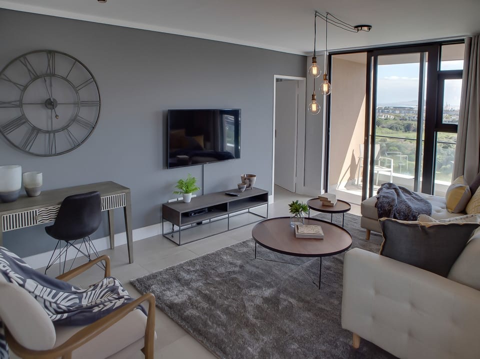 Light and airy, with modern finishes and luxurious design elements. This 2 bedroom unit boasts a large kitchen and scullery, both fully equipped, leading onto a living-cum-dining-area. The dining area is comfortable, seating four, and littered with eclectic nik-naks and ornaments, while the living room opens out onto a large balcony with staggering views of the Intaka wetlands. Both bedrooms are large with lush Queen XL beds and en-suite bathrooms. While 24-hour security and secure parking allow for added peace of mind.