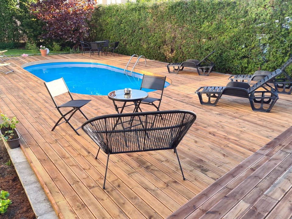 Great pool in the middle of The garden, nice sunbeds, some activities for children.