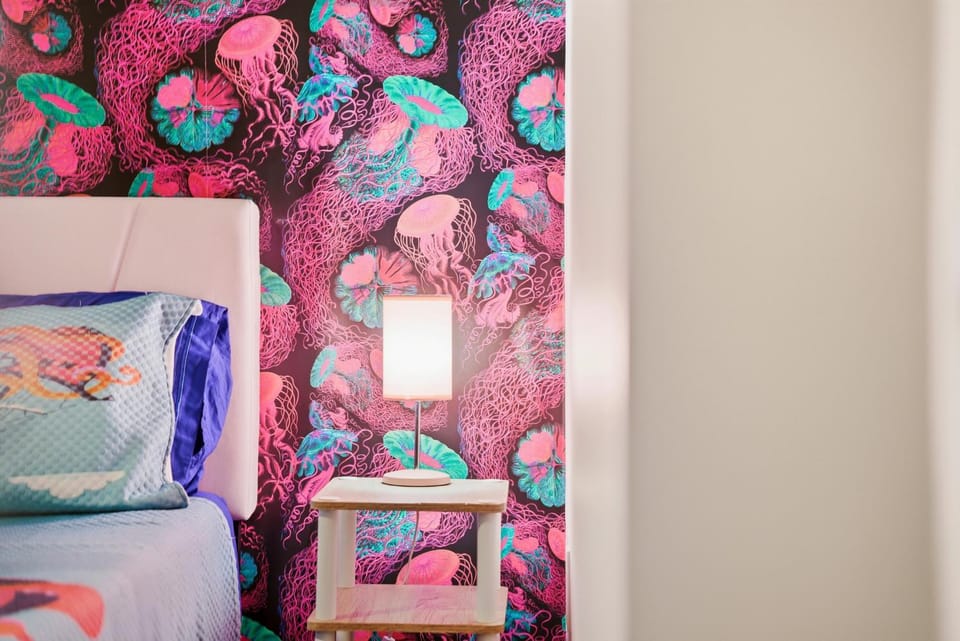 The decor is great and the location is perfect for bar hopping, resturant hopping and shopping. Everything is walking distance. The beach is like a 2-3 minute walk away as well. It is literaly the best place to stay for a bachelor, bachelorette, birthday, or any party you plan to kick back a few and not have to worry about driving. There was plenty of room for the 9 of us to sleep either on a bed or on pull out couches.