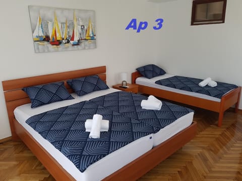 Wir, 2 Erwachsene, 1 Kind, hatten das Appartement im zweiten Stock (Doppelbett+Einzelbett, Küchenzeile, Bad).