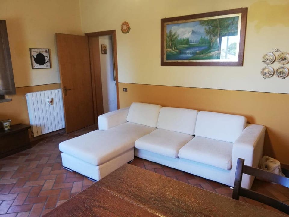 The owners are one of the highlights of this place. On top of being very friendly and accommodating, they regularly left us pastries, bread and pizza in the morning - they have a deli nearby - saving us from having to buy them or giving us a perfect excuse to do an aperitivo in the garden. The apartment is big enough and the kitchen is a good size. Getting to and from the property with the car wasn't a problem, and there are plenty of small supermarkets in town. Also, the place was spotlessly clean. Kudos for the washing machine and the deck chairs outside - a lovely touch.