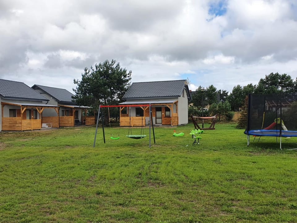 Bardzo mili właściciele. Domki czyste, zadbane. dobrze wyposażone (dobrze wyposażona kuchnia, suszarka do włosów, żelazko, deska do prasowania). W domkach trzy sypialnie co jest bardzo dużym plusem dla mnie. W każdym domku jest grill, suszarka na pranie, sprzęt plażowy. Nazwa obiektu idealnie oddaje rodzaj wypoczynku🙂 na posesji są tylko 4 domki wakacyjne, co sprawia, że jest cisza i spokój. Duży, zadbany, dobrze przemyślany teren na którym znajduje się staw, hamaki, miejsce na ognisko, kawałek piaszczystej plaży, boisko do siatkówki, plac zabaw. W stawie można łowić ryby oraz pływać rowerkami wodnymi na nim. Dla dzieci m. in. trampolina, huśtawki, karuzela, piłki, stół do ping ponga, cymbergaj, piłkarzyki. Za opłatą można skorzystać z sauny i masaży.