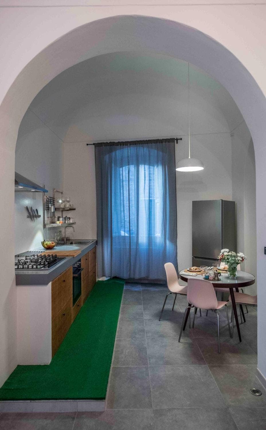 La pulizia: la doccia era proprio sporca (righe nere tra il piatto doccia e le maioliche, polvere sulla tenda a pacchetto). Pavimento sporco (abbiamo camminato con i calzini ed erano pieni di peli di cane). Una finta moquette al posto del pavimento rialzato della cucina, che non trovo igienico. Mancava un canovaccio in cucina, mancava un secchietto in bagno, le scale per scendere dal soppalco rumorosissime. Troppi interruttori e niente prese. Non credo che ci torneremo