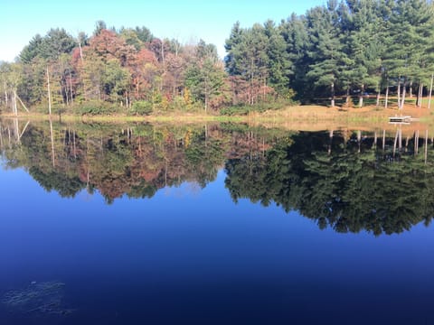 Nestled within 120 acres of serene wilderness, this rental cabin offers a tranquil retreat for nature enthusiasts. Surrounded by towering trees and meandering trails, the cabin boasts exclusive access to a private lake, perfect for swimming and fishing adventures. Guests can spend their days exploring the lush hiking trails that wind through the picturesque landscape, immersing themselves in the beauty of the great outdoors. Wildlife abounds, with sightings of deer, beaver, and turkey adding to the natural charm of the surroundings.