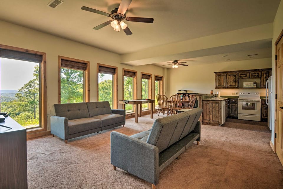 9.5 miles from The Great Passion Play in Eureka Springs, Spacious Log Cabin with Fire Pit and Game Room! features accommodations with access to a spa center. This vacation home provides accommodations with a balcony.