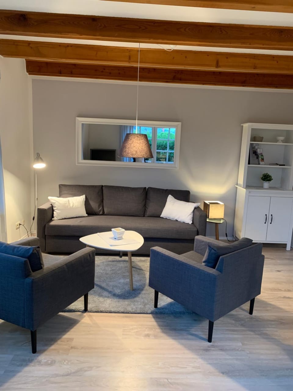 Gut ausgestattete Ferienwohnung als Doppelhaushälfte. Terrasse mit Strandkorb und Möbeln, Schuppen für Grill und Fahrrad etc. 200m zum See. Man hört abends die Gänse und Enten vom See her.