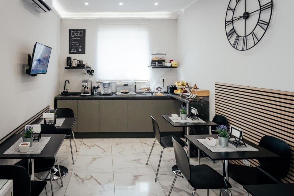 The location is about 10-15 min by taxi from the Fiumincino airport! The room was really clean and we had kettle to make a koffie or tea. Bathroom also modern and clean. The owner really helpful with all our questions. The shuttle bus service from Guest House to the airport is an great service!