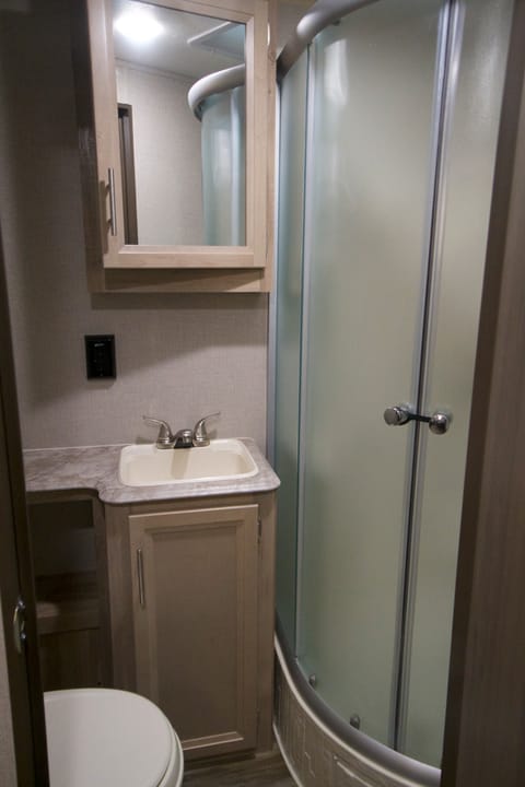 We didn’t find pool listed as an amenity for this towable trailer. It may be worth double checking if a pool is important for your stay.