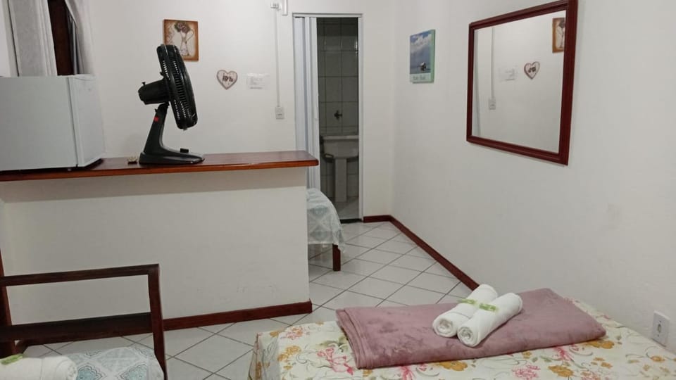 Optamos por um quarto com ar condicionado (Quarto Edson) que funcionou perfeitamente e ainda tinha wi-fi e ventilador disponível. Foi-nos fornecido sabonete, toalhas e roupa de cama, com a possibilidade de trocarmos quando quiséssemos.
