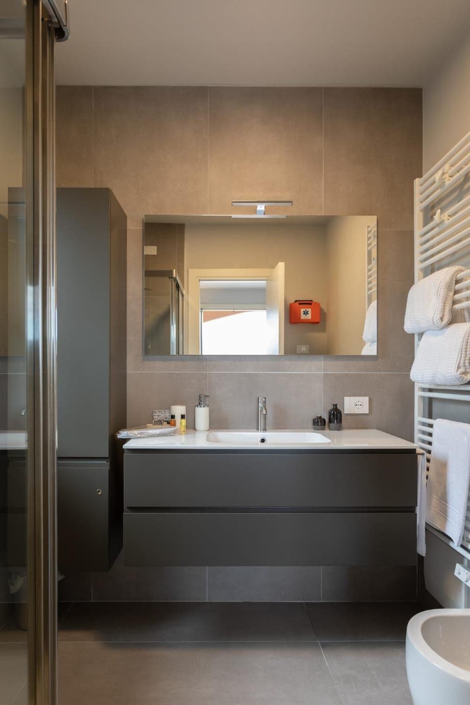 "beautiful apartment, amazing view, high quality Interieur - well equipped - enough towels- we have been happy!"