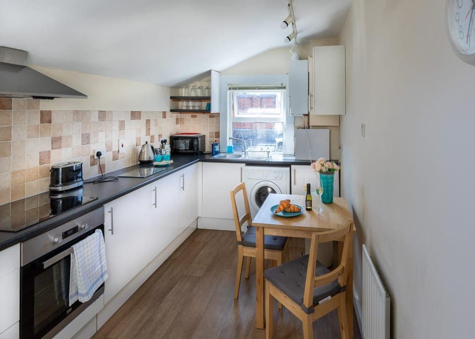 Ideal location just round the corner from the station about 10 - 15 min walk and on a bus route. Restaurants and a convenient shop just across the road. The apartment had everything we needed including an iron, ironing board, fan, microwave, bottle of Prosecco and WiFi. The bed and pillows were super comfy and the Host was exceptional and answered all my questions and was on hand if I needed anything.