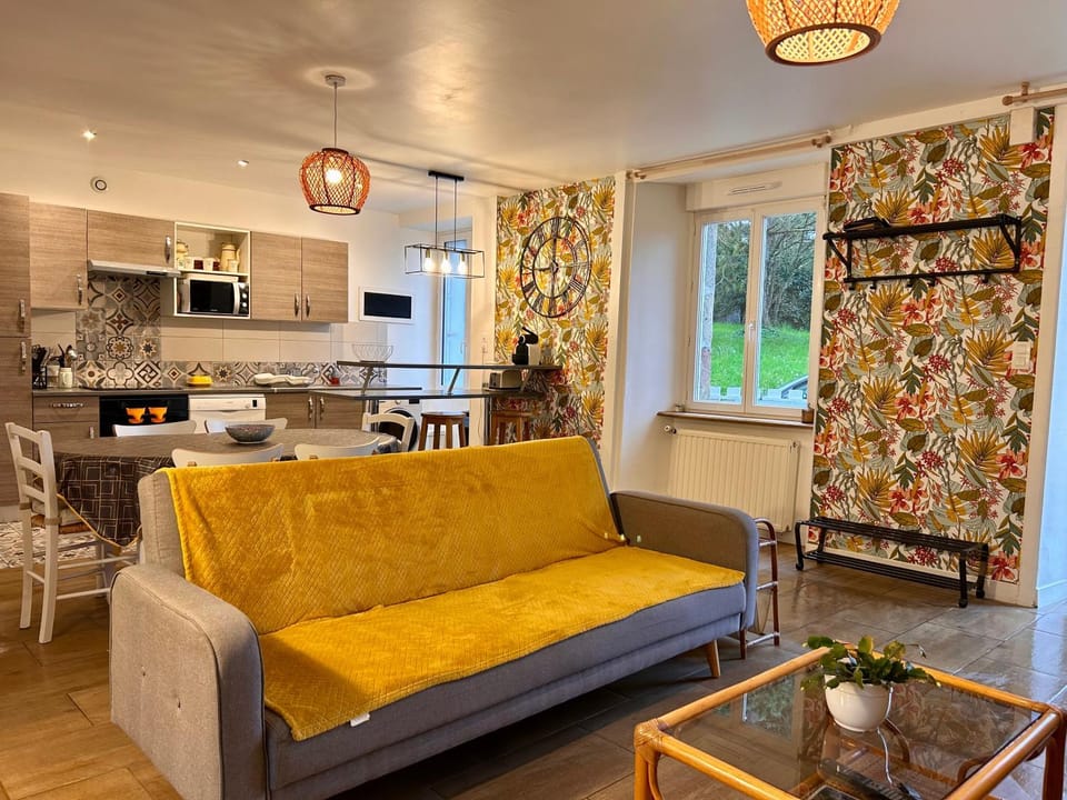 Gîte situé au calme, on y dort bien. Il est particulièrement bien équipé sans être surchargé et laisse beaucoup d'espace à vivre. Bien agencé avec l'espace nuit à l'étage. De nombreuses prises électriques disponibles partout ou c'est nécessaire. C'est très appréciable et plutôt rare dans les gîtes. Un petit jardin clos très agréable.