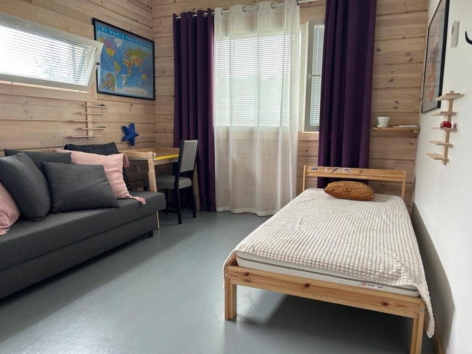 Saunan kytkin ei meinannut löytyä mutta lopulta löytyi kylpyhuoneen viereisen kaapin oven takaa. Televisiossa ei antennia eikä kanavat näy mutta yle areena ainakin toimi. Ruokailuvälineitä ihan liian vähän ainakin pieniä lusikoita löytyi vain kaksi. Vähän epäselvää ennen saapumista mutta pitää muistaa ottaa omat lakanat mukaan tyynyjä ja täkkejä löytyi kaapeista. Asunnossa vähän likaista ja roskaa lattialla kun saavuttiin sekä kärpäsiä.