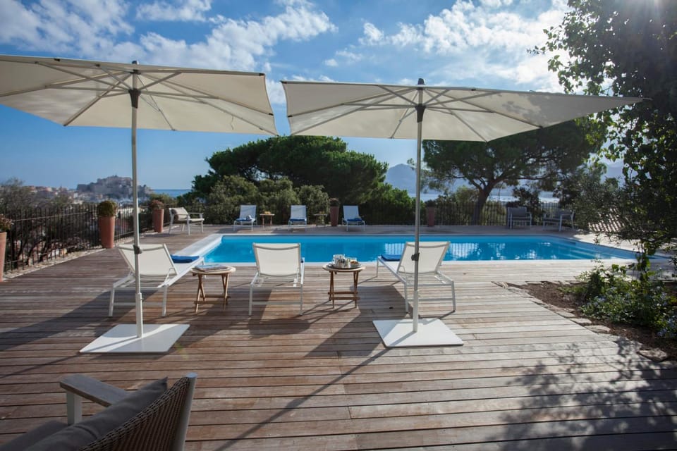 Just a 12-minute walk from Pinède Beach and 0.8 miles from Calvi Train Station, Villa campagne à Calvi piscine chauffée vue mer proche plage et centre features accommodations in Calvi, with a seasonal outdoor swimming pool and a garden.