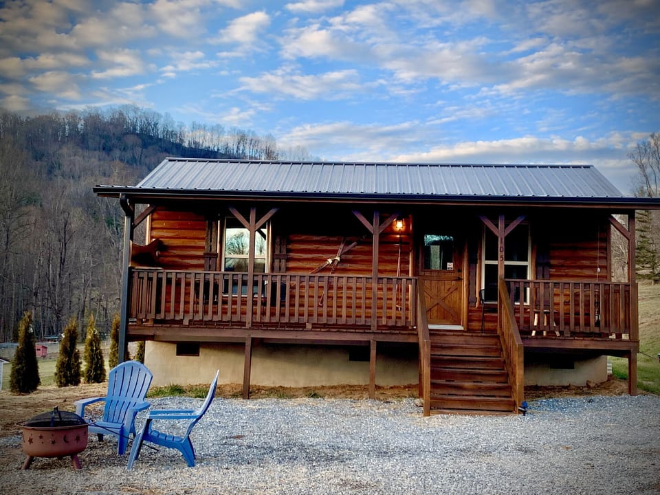 The Turkey Trot cabin is a 400 sq ft, newly built Amish cabin located on the North Fork of the Swannanoa Valley. It is nestled on our family's homestead that was settled in the 1800s and surrounded by gorgeous 360-degree mountain views.