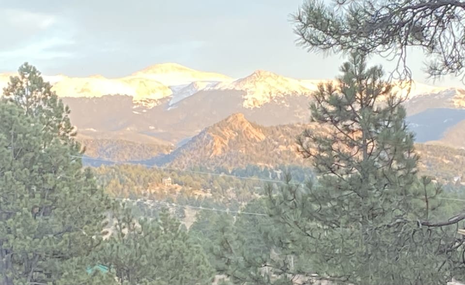 This rustic mountain getaway in beautiful Florissant Colorado is just minutes away from so many things, from the history and hiking of Florissant Fossil beds National Monument to the excitement of the Cripple Creek Casinos. Nearby you will also find the recreational areas of Pikes Peak and all of the attractions of Manitou Springs and Colorado Springs. A short drive south (37miles) will find you at the magnificent Royal Gorge Bridge and the heart pounding thrills of white water rafting the Arkansas River. Our 2500 sq ft log home has a dazzling view of Pikes Peak from the living room or the spacious deck. The 3 bedroom home with the bonus sleeping arrangements downstairs easily sleeps 8 adults (a Pack and Play baby crib is also in the home). A 2020 remodel brought luxury and convivence to the home with updated bathrooms and all new kitchen appliances. The kitchen/dining area will comfortably seat your entire family and then some. In 2021 An automatic whole house emergency back up generator was added for guests security and peace of mind. In 2025 we are excited to share our new remodeled and replaced outside deck. This over 600 square foot elevated outdoor space is a popular hangout with its breathtaking view of Pikes Peak. Local wildlife that almost daily visit the property is a guest favorite.