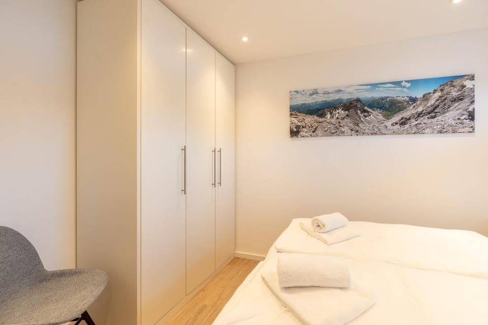 Sauber und modern eingerichtet. Es gab ein separates Schlafzimmer mit großem Kleiderschrank. Die Küche war in den Wohnraum integriert mit Backofen,Spülmaschine und einem sehr coolen Herd. Der Kühlschrank war sehr sauber. Der Essbereich war ausreichend groß. Die Schlafcouch war sehr bequem und die kleinen Terrasse hat zum verweilen eingeladen, da man einen traumhaften Blick auf die Berge hatte. Das Badezimmer war modern und sehr komfortabel.