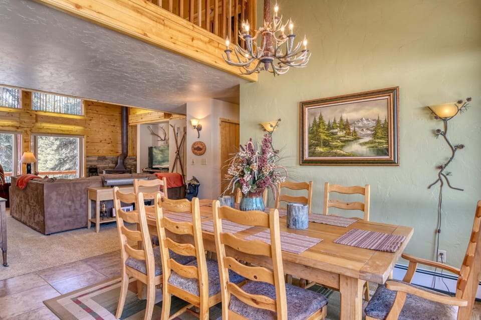 Indulge in a peaceful retreat at Ponderosa Pines Lodge, Beautiful and Spacious Home, Pet friendly, sleeps 13, our elegant House in South Fork. Enjoy amenities including Dryer, Fireplace and WiFi/Internet, and more.