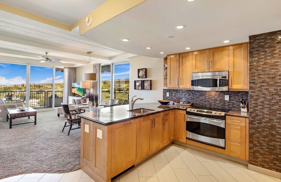 Luxuriously remodeled with high-quality craftsmanship and materials, Suite 1224 is the perfect special retreat for your next Maui vacation. With over 900 sq ft of professionally decorated interior living area, your party will have plenty of space to gather and reconnect. The ocean and mountain views extend deep into the living room, kitchen, dining room, and bedroom.