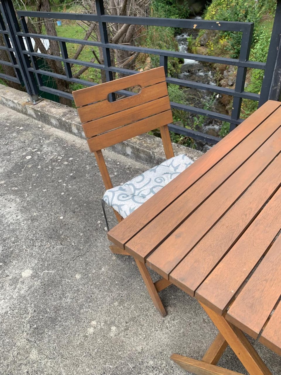 La tres grande terrasse. La pleine nature.la rivière au bas de la residence.