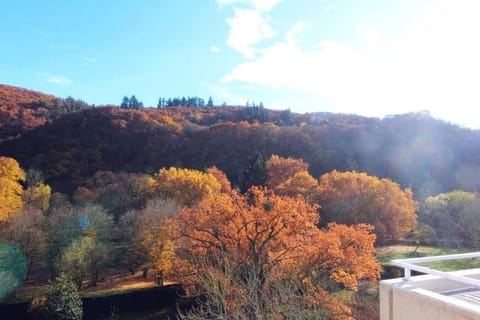 Attractive penthouse flat (5th floor) at the Kurpark; equipped with a spacious balcony with a marvellous view of the Rheingrafenstein. Only a few steps away from the Nahe. Very quiet location! The 58 square metre flat has a large and tastefully furnished living/dining room with flat-screen TV, bedroom with back-friendly beds, kitchen, bathroom with bathtub, shower and washing machine, hallway, storage room and furnished balcony with awning. A lift is of course available. The kitchen is equipped with hob, oven, microwave, coffee machine, toaster, kettle and offers everything a hobby cook needs. Pots, pans and cooking utensils are available in sufficient quantities. The apartment is equipped with crockery and cutlery for at least 8 people. WLAN is available free of charge in all rooms. Brief description Miscellaneous : Non-smoking house Brief description 1Number of kitchens : 1Other rooms : Storage room Bathroom 1Other bathroom facilities : Surroundings Hire facilities : Bicycle hire Sports facilities in the surrounding area : Golf course, canoeing, mountain biking, paragliding, cycling tours, tennis Surroundings 1Other sports and leisure facilities : Boules court and outdoor pool in the immediate vicinity